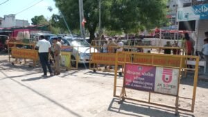 બસ સહીત છ જેટલી પોલીસવાન સાથે બેરીકેટ ગોઠવીને કડક સુરક્ષા ગોઠવવામાં આવી હતી. તેમ છતાં ક્ષત્રિય સેનાના કાર્યકરો મોટી સંખ્યામાં બેરીકેટ તોડીને ઉદૄઘાટીત ભાજપ કાયાઁલયના મંડપ સુધી ધસી